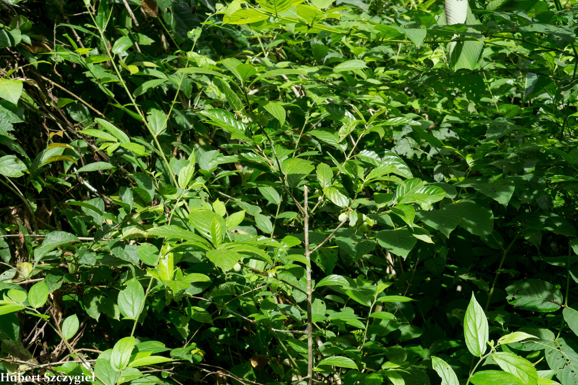 The species occurs in wet and moist forest, forest edges, and secondary growth. It appears tolerant of some disturbance, colonizing edges and gaps, though it also persists in primary forest understory. The deciduous habit, dropping leaves during dry periods, may help it survive in seasonally dry microsites within otherwise humid forest. La especie ocurre en bosque húmedo y muy húmedo, bordes de bosque y crecimiento secundario. Parece tolerante a cierta perturbación, colonizando bordes y claros, aunque también persiste en el sotobosque de bosque primario. El hábito caducifolio, perdiendo hojas durante períodos secos, puede ayudarla a sobrevivir en micrositios estacionalmente secos dentro de bosque por lo demás húmedo.