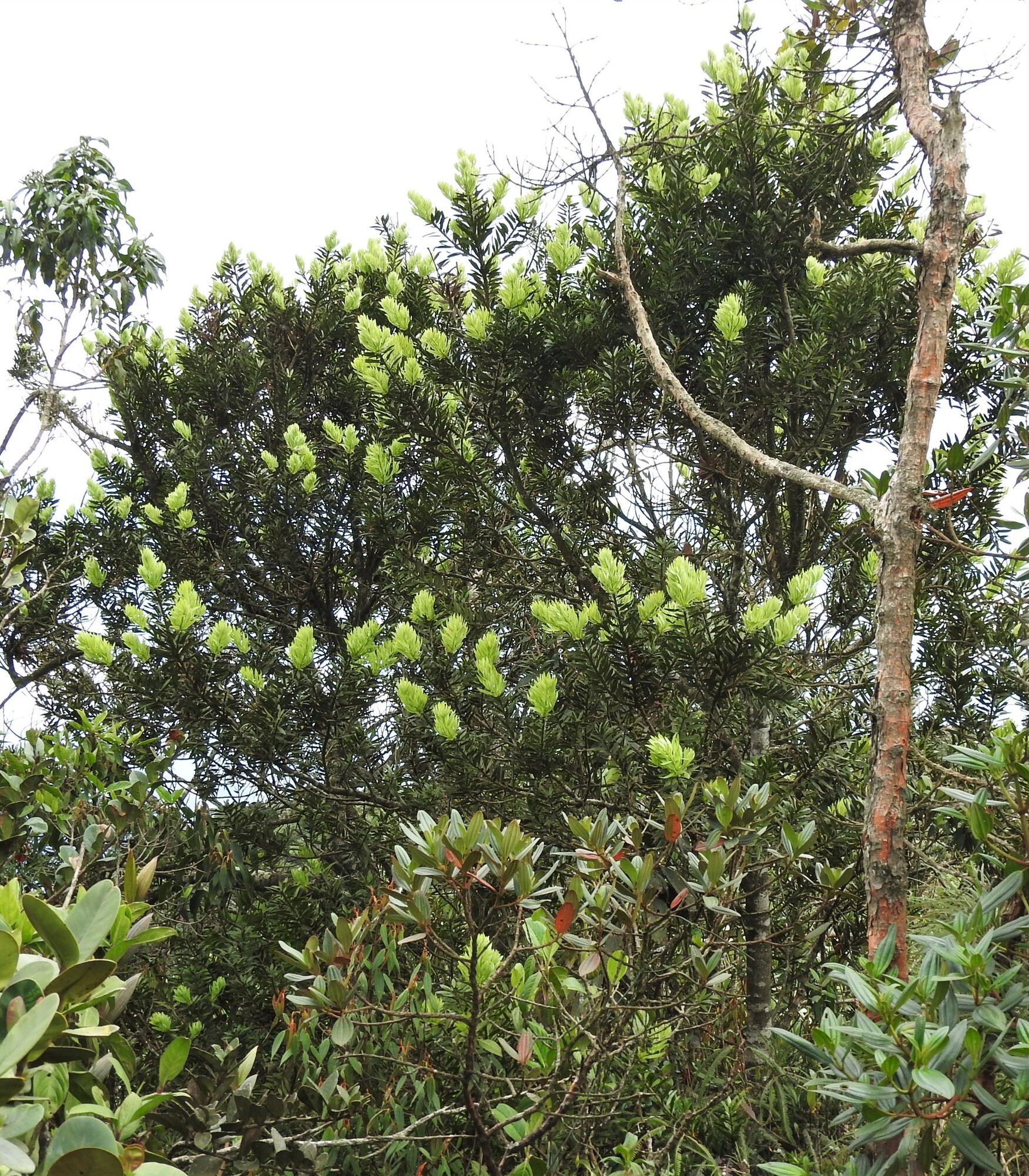 Profile of Costa Rica's endangered endemic Podocarpaceae, which shares montane habitat with P. oleifolius. Perfil de la Podocarpaceae endemica amenazada de Costa Rica, que comparte habitat montano con P. oleifolius.
