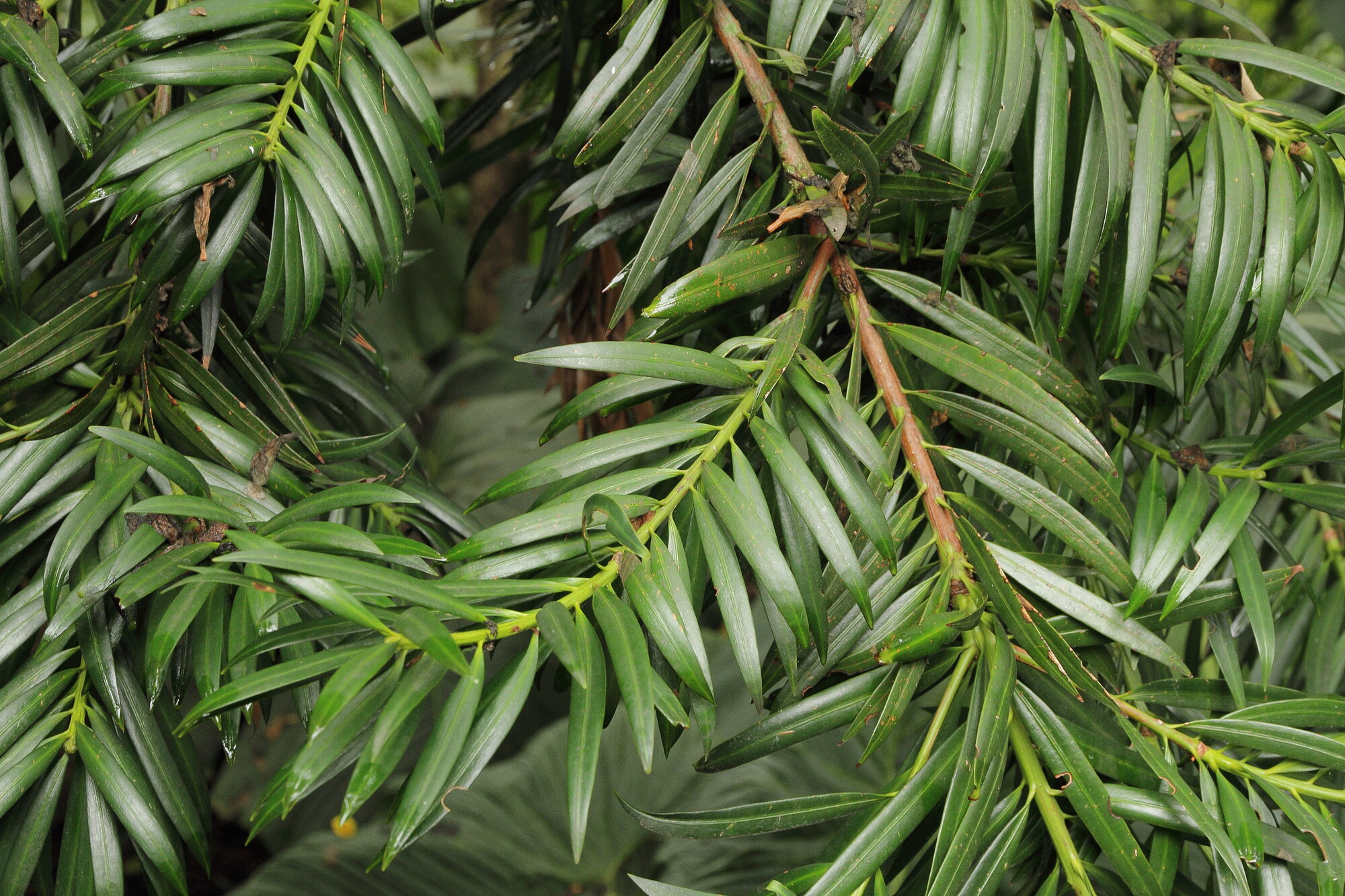 Four species of Podocarpus occur in Central America. P. guatemalensis is a lowland species (sea level to 1,000 meters) readily distinguished by its globose terminal buds and leaves with a raised upper midrib; in Costa Rica it is Critically Endangered, with fewer than 250 mature individuals remaining. P. costaricensis is endemic to the Tarrazu region of San Jose Province, distinguished by bud scale morphology similar to P. matudae. P. matudae, with two subspecies, is endemic to Mexico and northern Central America. The only other member of the Podocarpaceae in Costa Rica's montane forests is Prumnopitys standleyi (sometimes placed in Pectinopitys), an Endangered endemic restricted to late-successional montane rainforest between 2,000 and 2,600 meters. It co-occurs with P. oleifolius in the Talamanca highlands, where both share the canopy with Magnolia poasana, Cleyera theaeoides, Weinmannia spp., and various Lauraceae. Cuatro especies de Podocarpus se encuentran en America Central. P. guatemalensis es una especie de tierras bajas (nivel del mar a 1.000 metros) facilmente distinguible por sus brotes terminales globosos y hojas con nervadura central elevada; en Costa Rica esta En Peligro Critico, con menos de 250 individuos maduros restantes. P. costaricensis es endemica de la region de Tarrazu en la Provincia de San Jose, distinguida por la morfologia de las escamas de los brotes similar a P. matudae. P. matudae, con dos subespecies, es endemica de Mexico y el norte de America Central. El unico otro miembro de las Podocarpaceae en los bosques montanos de Costa Rica es Prumnopitys standleyi (a veces ubicado en Pectinopitys), una especie endemica En Peligro restringida a bosque lluvioso montano de sucesion tardia entre 2.000 y 2.600 metros. Coexiste con P. oleifolius en las tierras altas de Talamanca, donde ambos comparten el dosel con Magnolia poasana, Cleyera theaeoides, Weinmannia spp. y diversas Lauraceae.